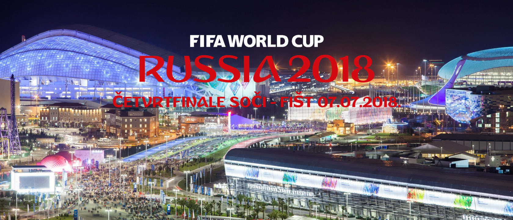 06.07. 2018. transfer u zračnu luku BUDIMPEŠTA na let za Moskvu (VKO) u 17:30 sati, dolazak u zrašnu luku Vnukovo u 21:00 sat, presjedanje na let za Soči, ranojutarnji dolazak (cca 02:00 sata) u Olimpijsko selo – prijava u hotelu, izlazak u grad, nočenje. Zajutrak u hotelu (do 11:30 sati), kasna odjava i deponiranje prtljage u hotelu, odlazak na stadion Fišt oko 20 sati (u blizini-pješke do stadiona cca 15min). Tekma od 21 sat POBJEDAAAA!